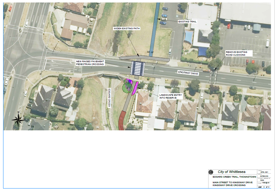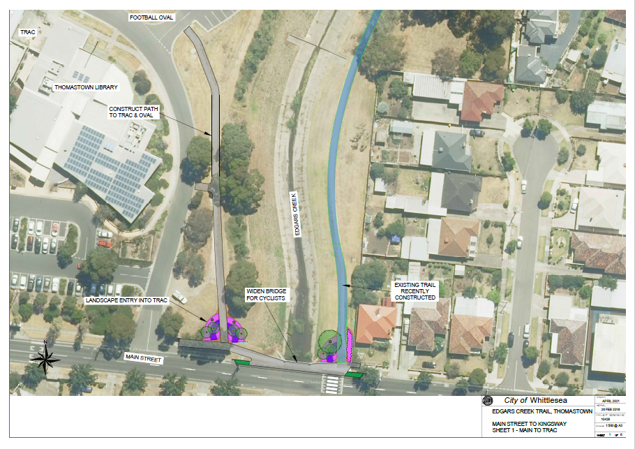 Link to TRAC – 2022/23 - a link between the Edgars Creek Trail and the TRAC via Main Street. This will involve modifying the north side of the Main Street bridge to cater for cyclists and providing a link on the west side of the link through the TRAC campus to link with the internal paths in the facility