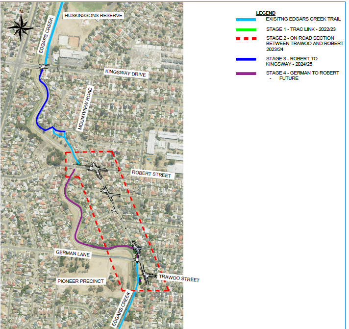 - Stage 4 - German Lane to Robert Street via Edgars Creek reserve - Future if needed